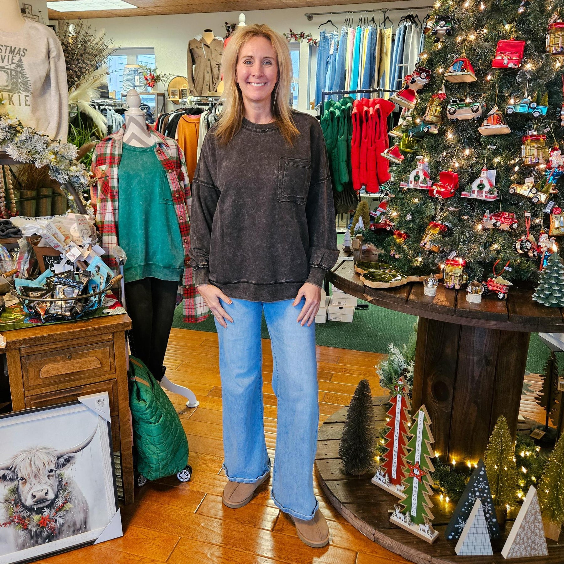 Acid Wash Raw Edge Pullover